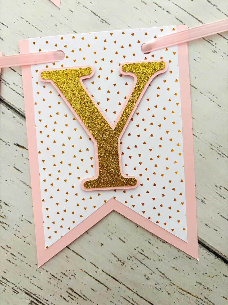 This listing is for a pink and gold hearts happy birthday banner. If adding a name, please leave the name in the notes section during checkout.