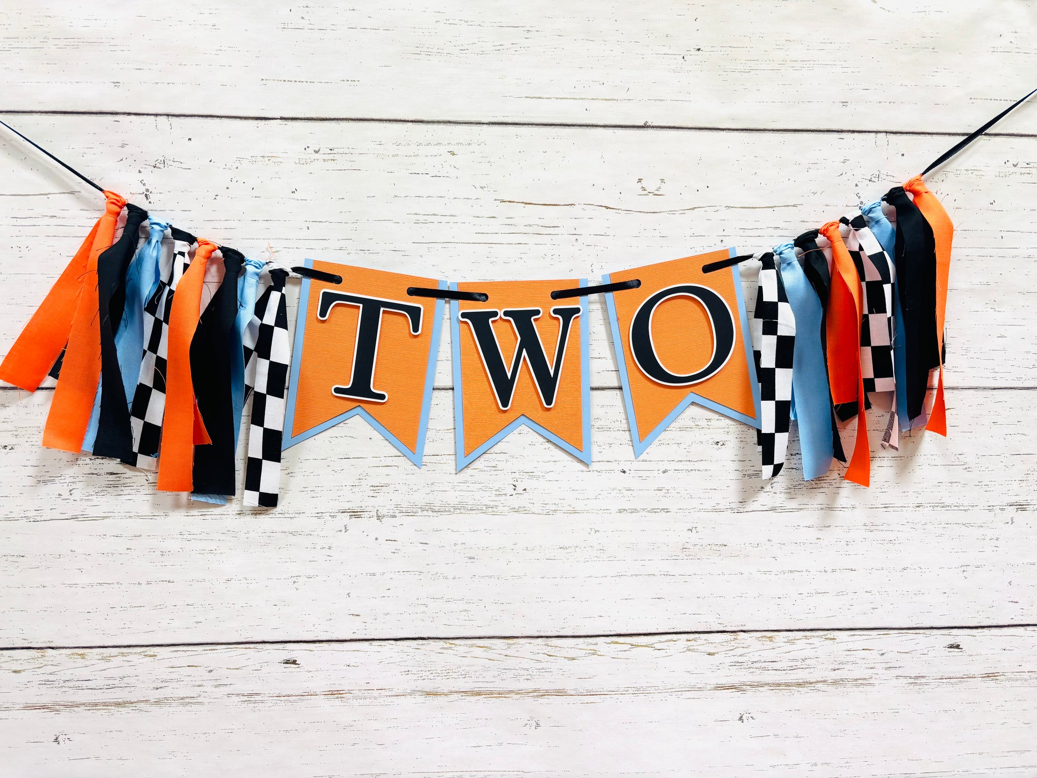 This blue and orange banner will be the perfect addition to your little one's first birthday! The banner coordinates perfectly with a McLaren Birthday Party, Blippi themed party, or a hot wheels themed party.