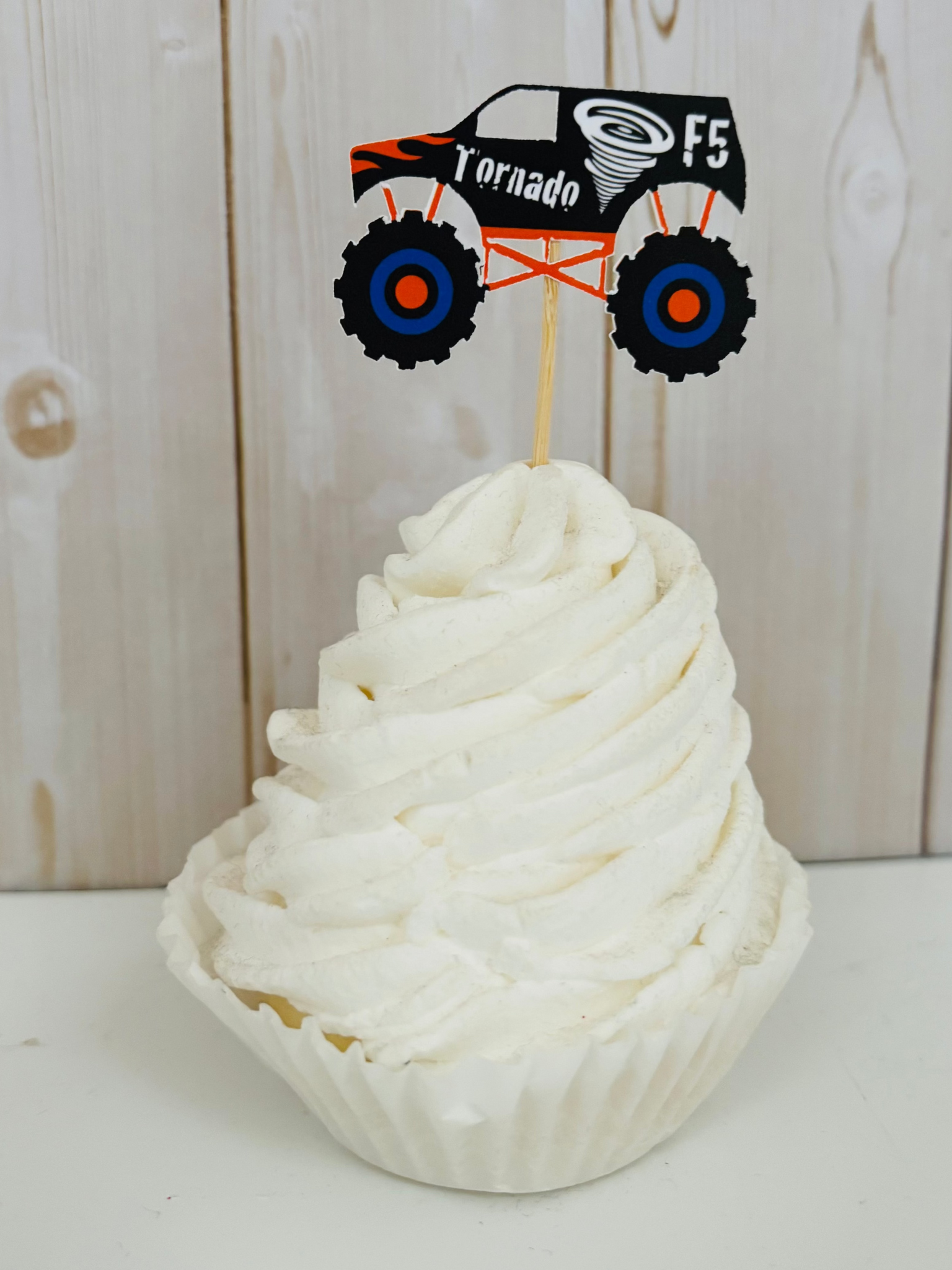 The trucks are print and cut images. They are not layered cardstock. They are printed on glossy photo paper.