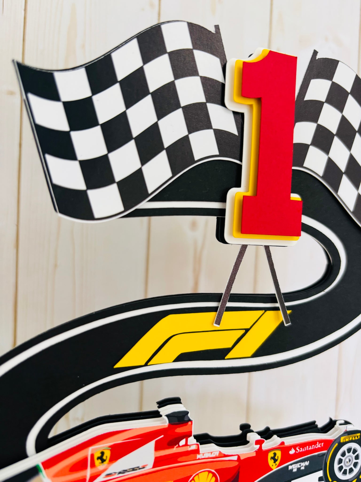 This listing is for a Ferrari inspired formula one racing cake topper.