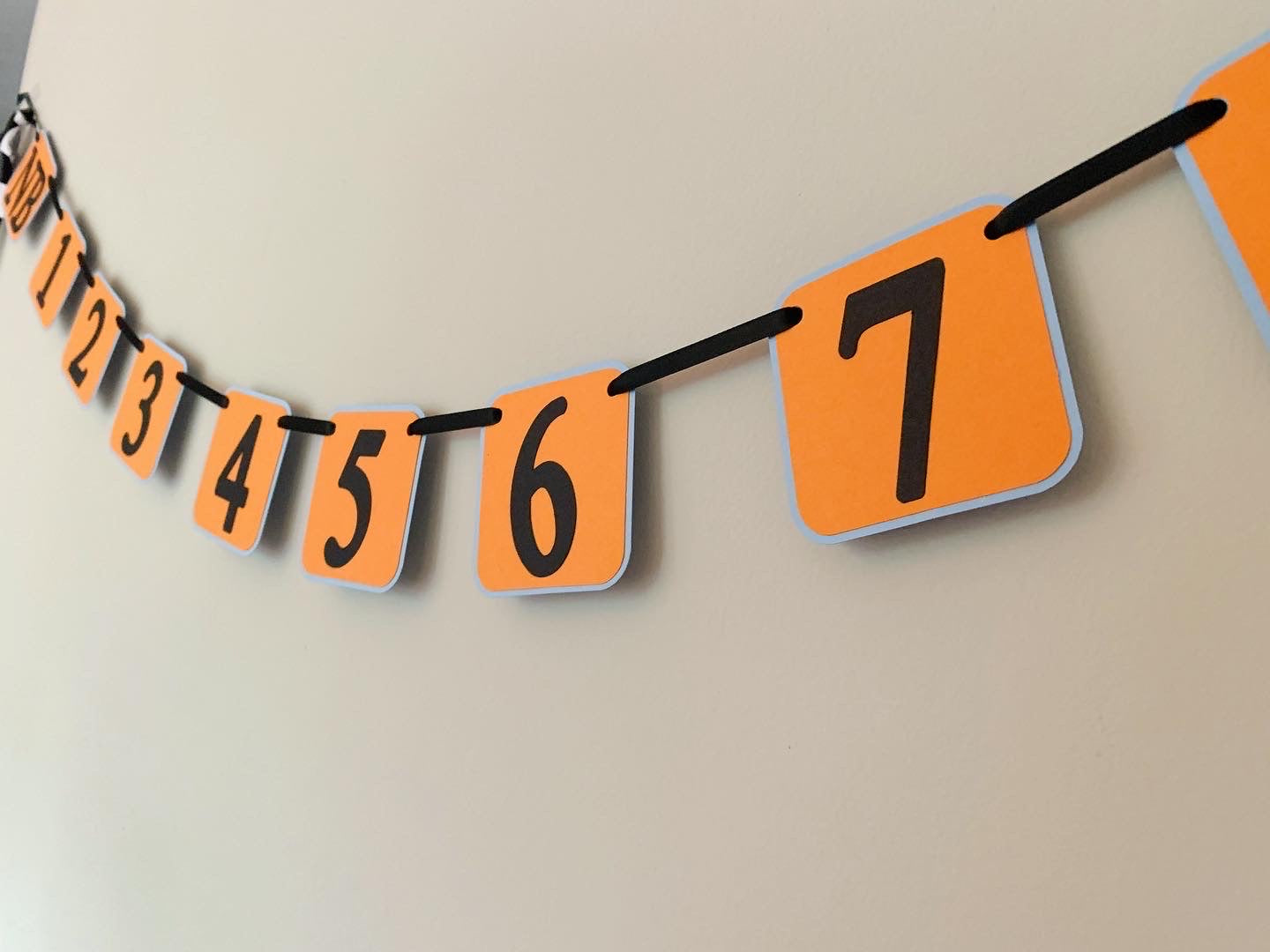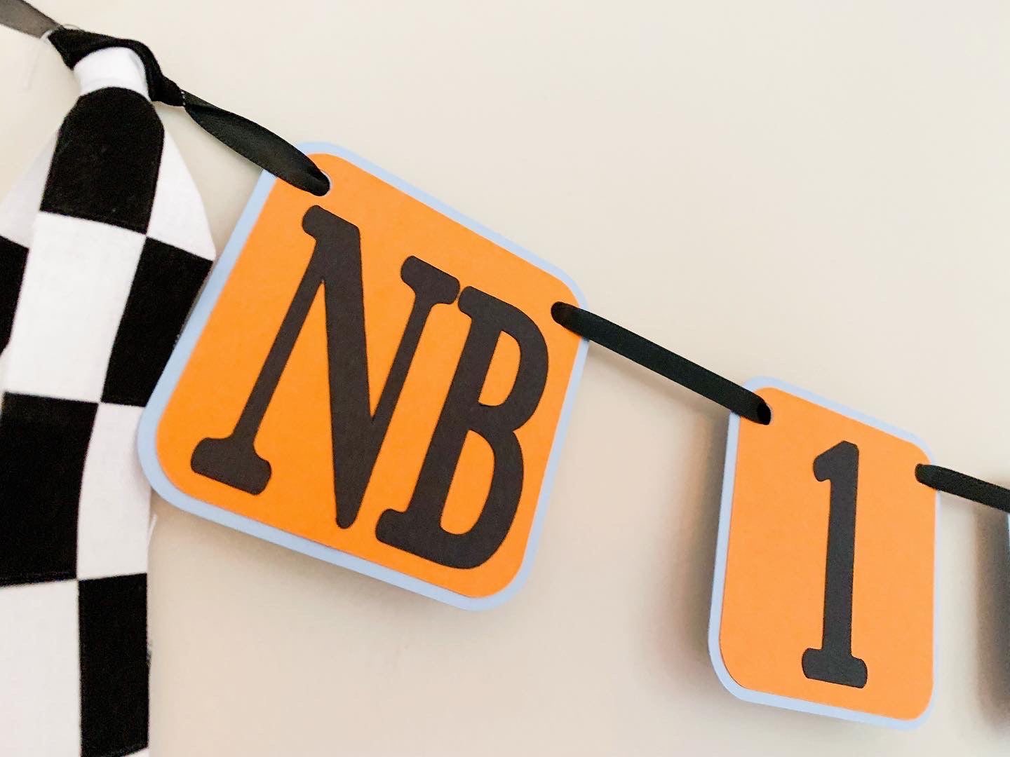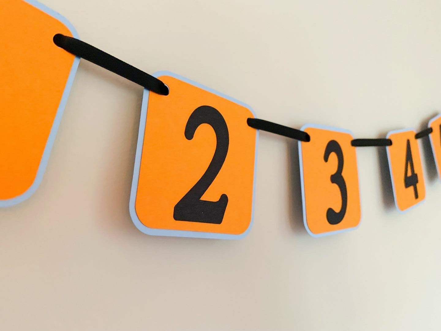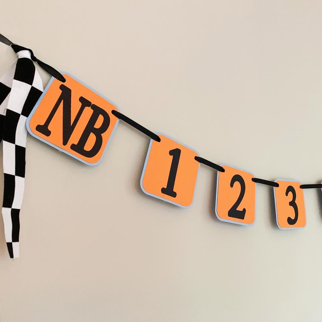 This orange, blue and black McLaren inspired formula one racing monthly photo banner will be the perfect addition to your little one's first birthday!