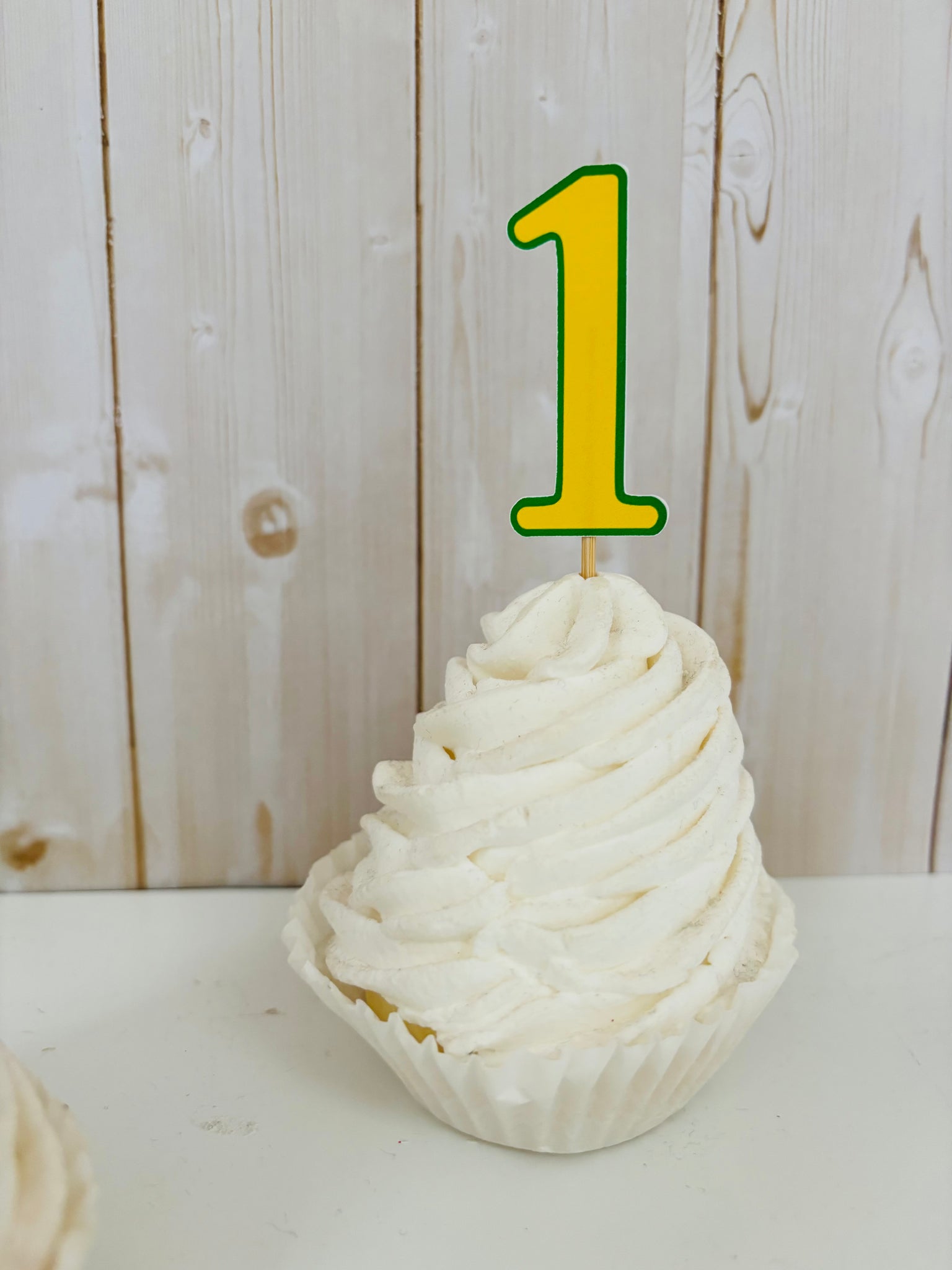 Each topper is attached to a 4" wooden bamboo skewer. The toppers are not double sided.
