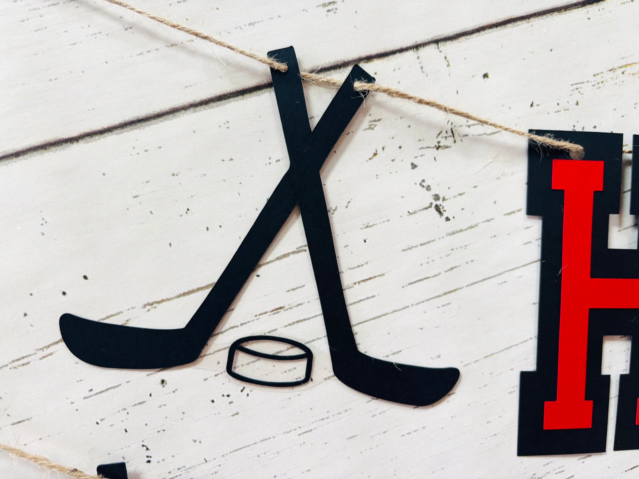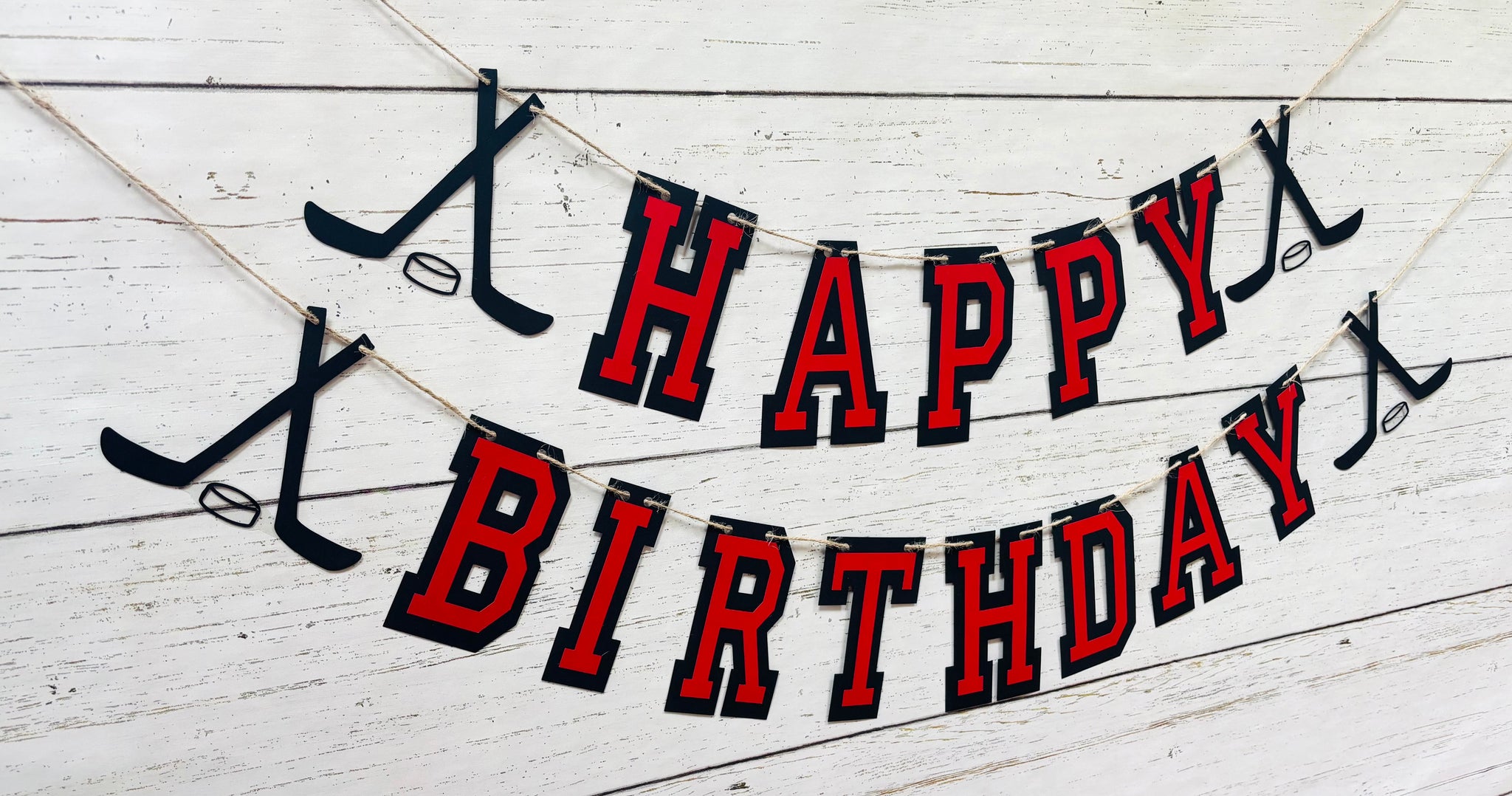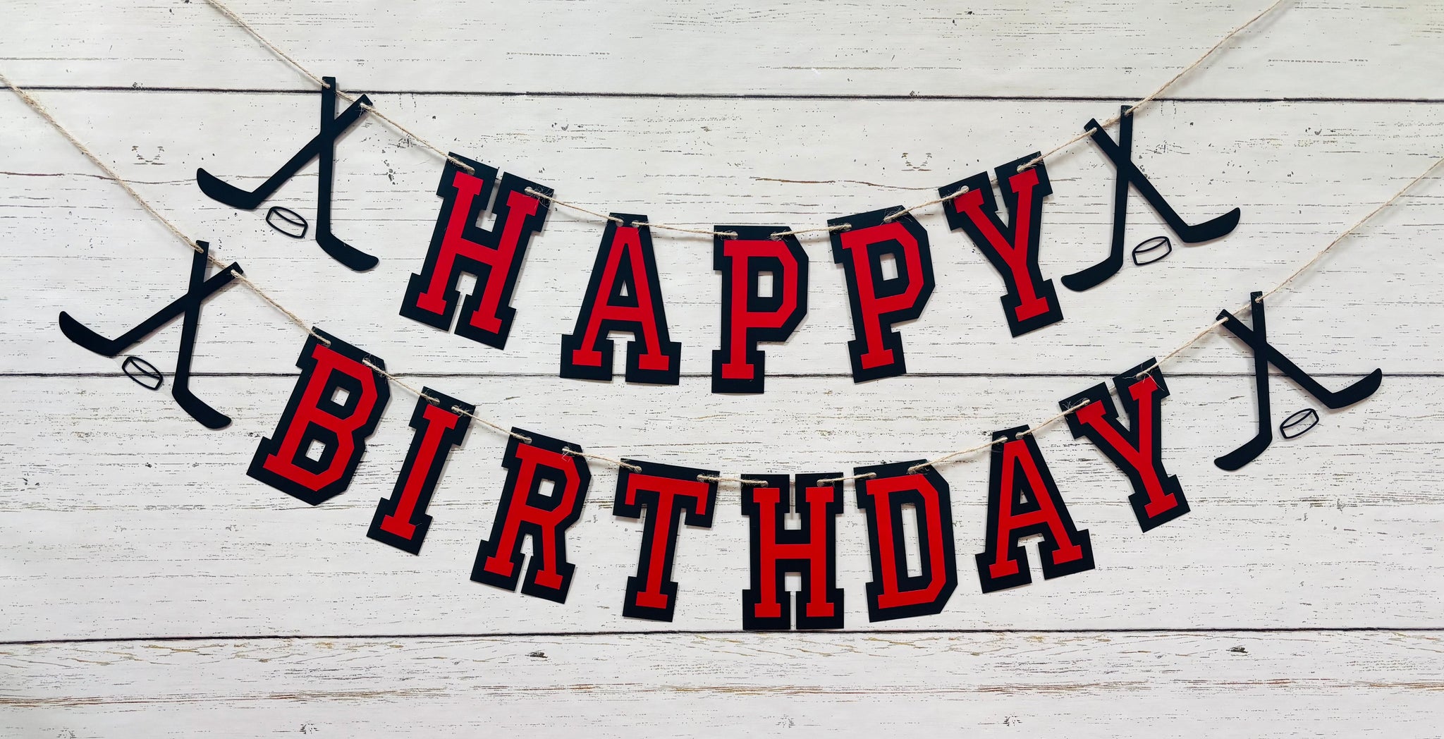 This listing is for a hockey themed HAPPY BIRTHDAY banner.