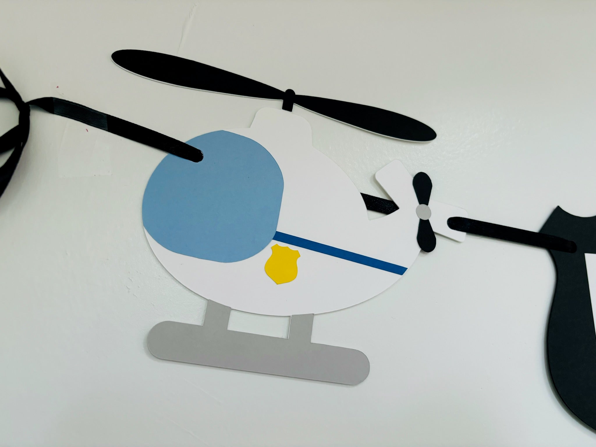 Each pennant is in the shape of a police officer badge and is cut from 80lb black cardstock. The letters are approximately 3.5" tall. Each pennant is 5.2" tall and 4.3" wide.
