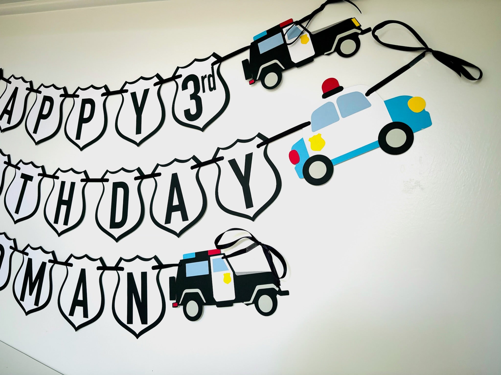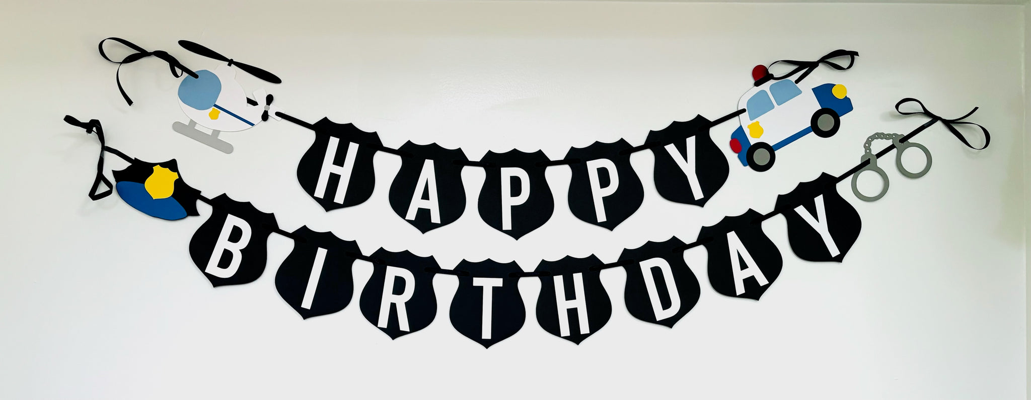 This listing is for a police themed HAPPY BIRTHDAY banner.