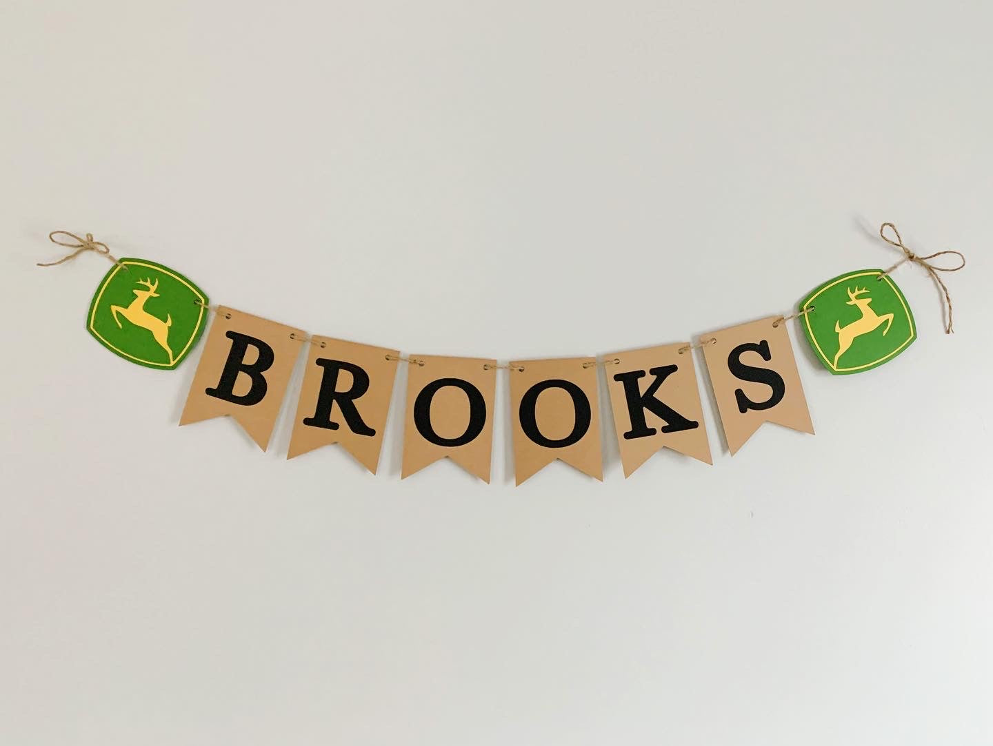 This listing is for a green tractor custom phrase banner. Please leave the name, age, word or custom phrase that you would like on the banner in the notes section during checkout.